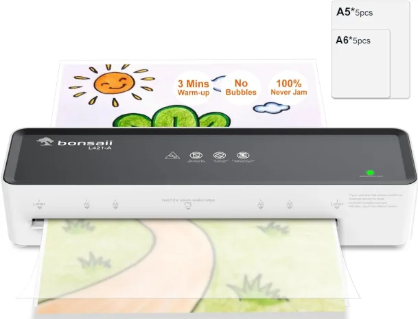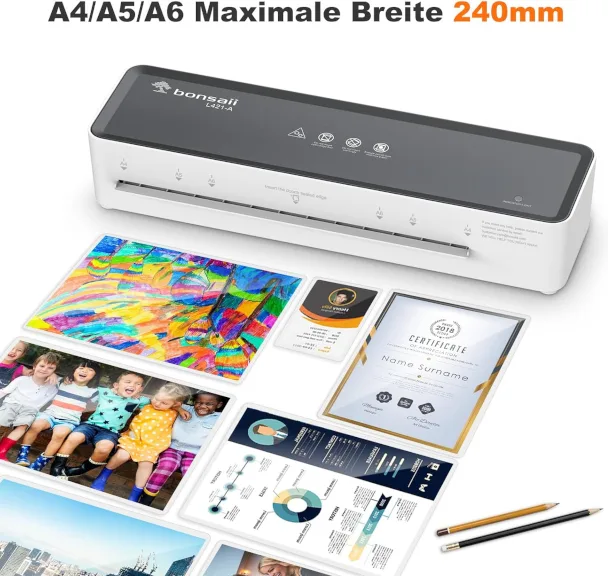 Kile töötlemise võimekus – toetab 80–100 mikroni paksuseid kiletaskuid. Komplektis 5 A5 ja 5 A6 formaadis kiletaskut.