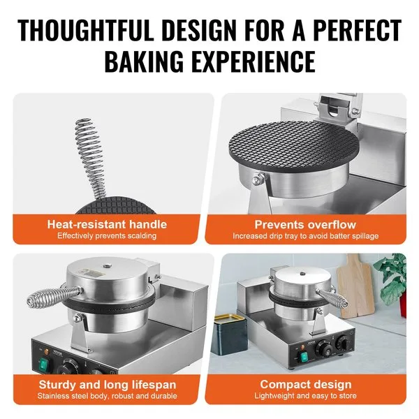 Jäätisevahvli küpsetaja, 1230W, Roostevabast Terasest