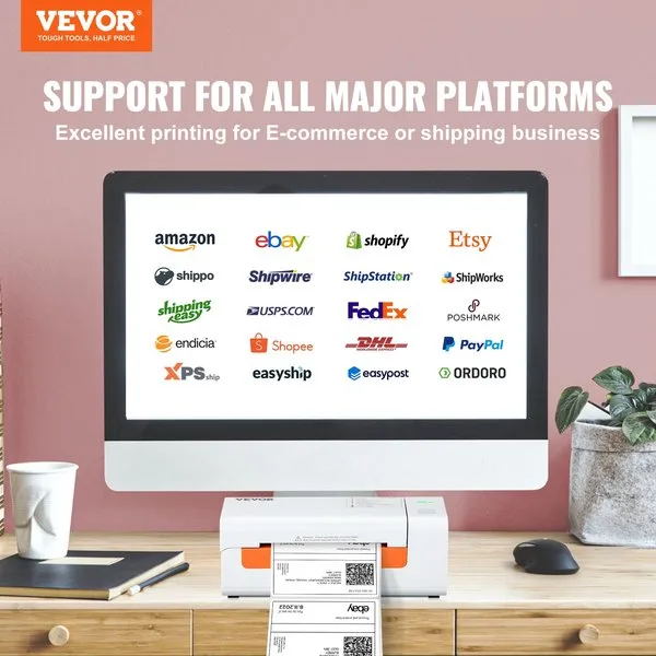 - Ühilduvus erinevate platvormidega: See saadetise kleebiseprinter on loodud tõstma teie töö tõhusust ja tooma rohkem ärilist mugavust. See vastab erinevate e-kaubanduse ja transpordiplatvormide vajadustele, sealhulgas Amazon, eBay, Shopify, PayPal, Etsy, UPS, XPSship, Shippo, ShippingEasy, WorldShip, OrderCup, FedEx jne. Alustage oma äri tõhusalt tänasest!