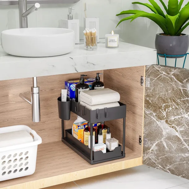 • Kahekordne riiul hoiab valamualuse ruumi korras ja organiseeritud