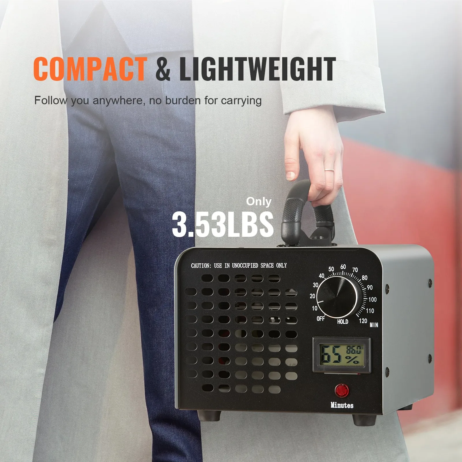 - Intelligentne ajastuskontroll: Seadmel on niiskusenäidik ja 0-120 minuti taimer. Saate reguleerida töötamise aega kuni 120 minutit ja kasutada “HOLD” režiimi pidevaks töötamiseks. Niiskuseteataja aitab hoida ruumi kuivana, mis parandab lõhna eemaldamise tõhusust.