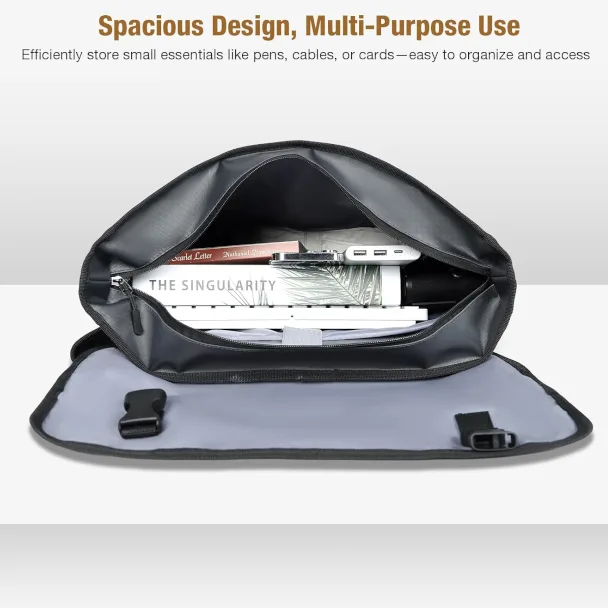 Kerge ja vastupidav materjal – Kott on valmistatud kvaliteetsest veekindlast kangast, mis kaitseb elektroonikat vihma ja niiskuse eest. Tugev, ent kerge konstruktsioon tagab pika kasutuse ilma liigset raskust lisamata.