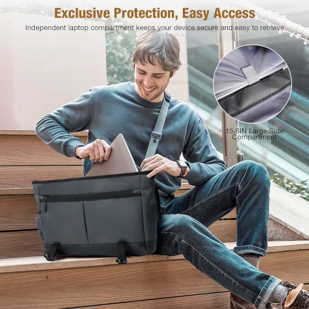 Erinevad kandmisviisid – Reguleeritava polsterdatud õlarihma ja mugava pealmise sangaga kott sobib suurepäraselt nii meestele kui naistele. Seda saab kanda õlal või üle keha, pakkudes isikupärast ja mugavat kandmiskogemust. Täiuslik igapäevasteks käikudeks, tööle või reisile.
