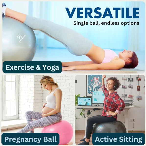 Mitmekülgne kasutus – Sobib joogapalliks, kontoritooliks, treeningpalliks või rasedus- ja sünnituspalliks. Asendamatu abivahend kerelihaste sihipäraseks tugevdamiseks.